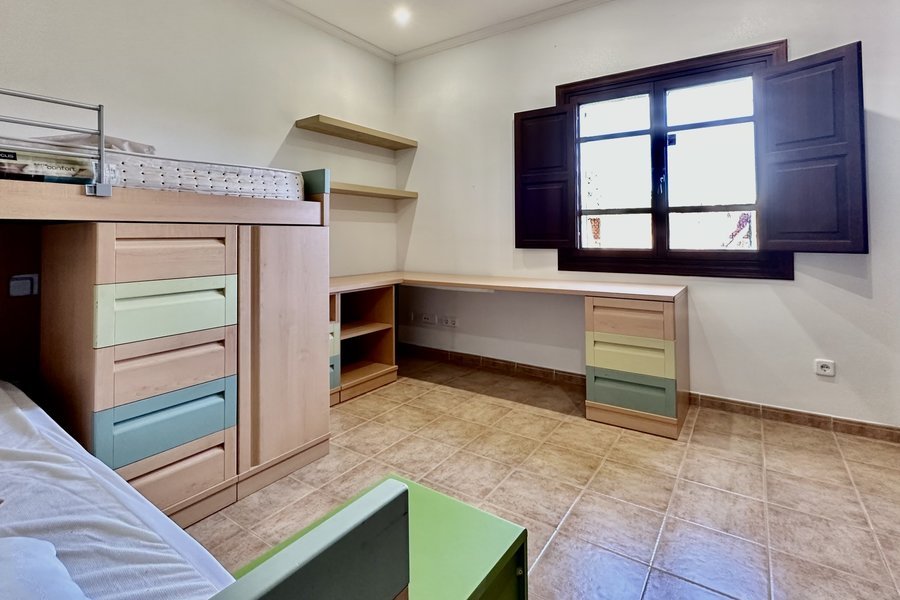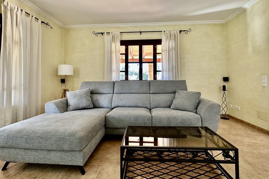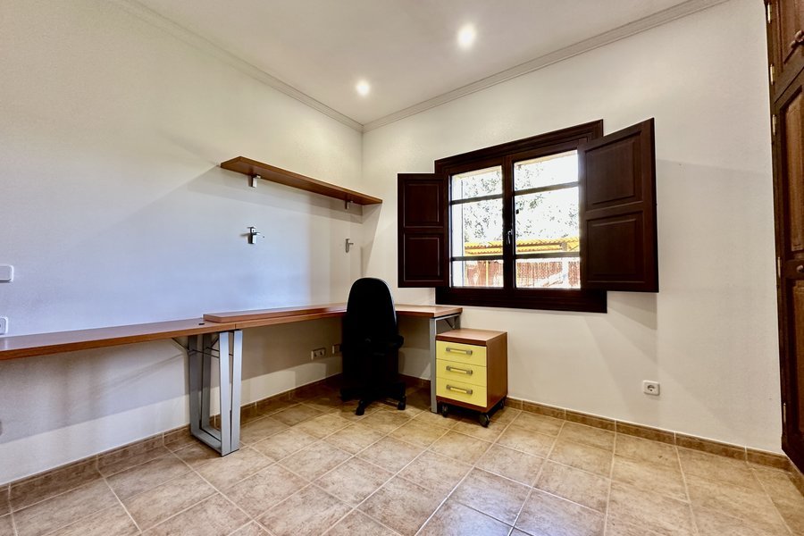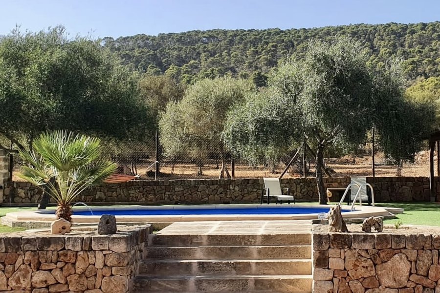 Dieses schöne und sonnige Anwesen befindet sich in der ruhigen Gegend von Ses Olleries, in der Gemeinde Santa Eugenia, nur etwa 20 Autominuten von Palma entfernt. Das Chalet hat eine bebaute Fläche von ca. 300 qm. Das Haus befindet sich auf einer Etage und besteht aus einem geräumigen Wohnzimmer mit Kamin, einem Esszimmer, einer voll ausgestatteten Küche mit einem separaten Abstellraum, 4 Schlafzimmern und 2 Bädern mit Badewanne. Es gibt auch ein drittes Badezimmer in der Nähe des Pools. Das Anwesen ist von schönen Grünflächen umgeben und es hat auch einen Pool, eine Außenküche, Klimaanlage, Internet und eine sehr ruhige und entspannende Umgebung.