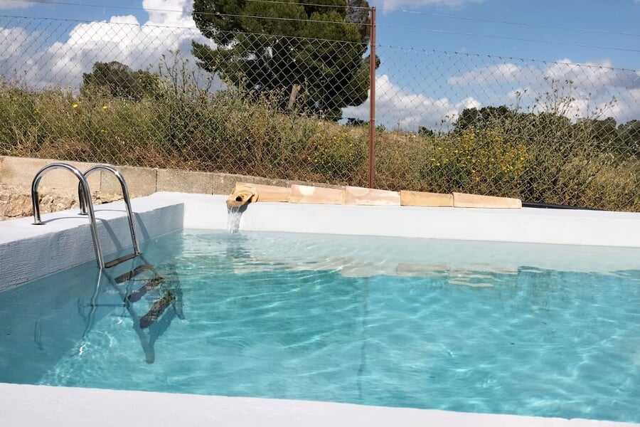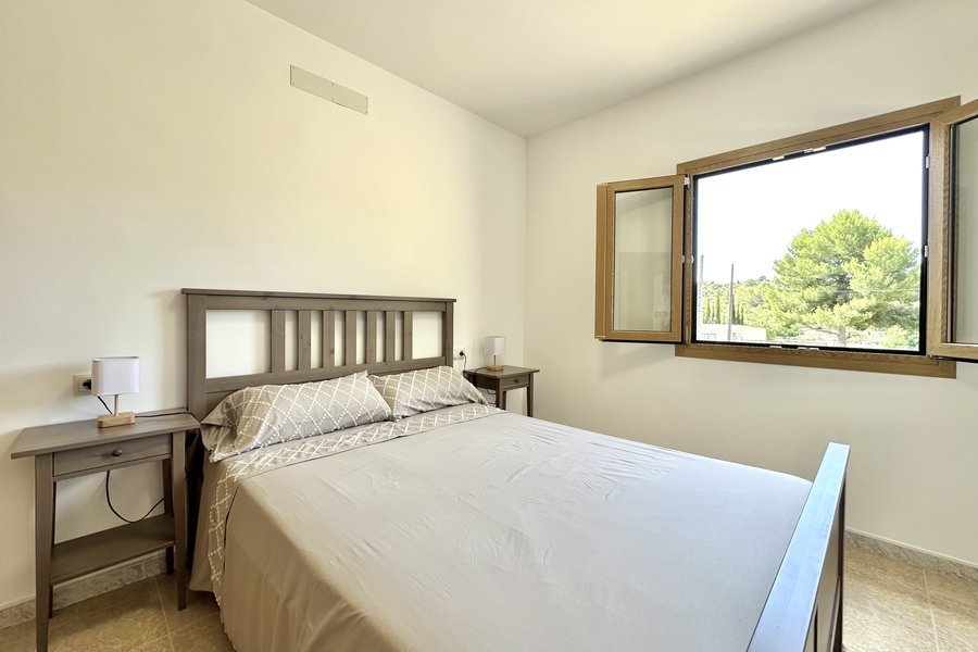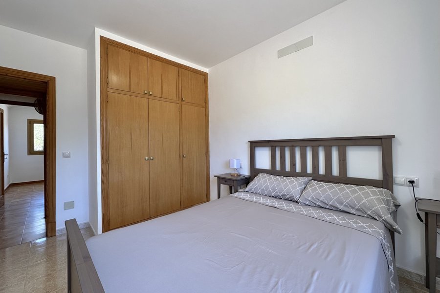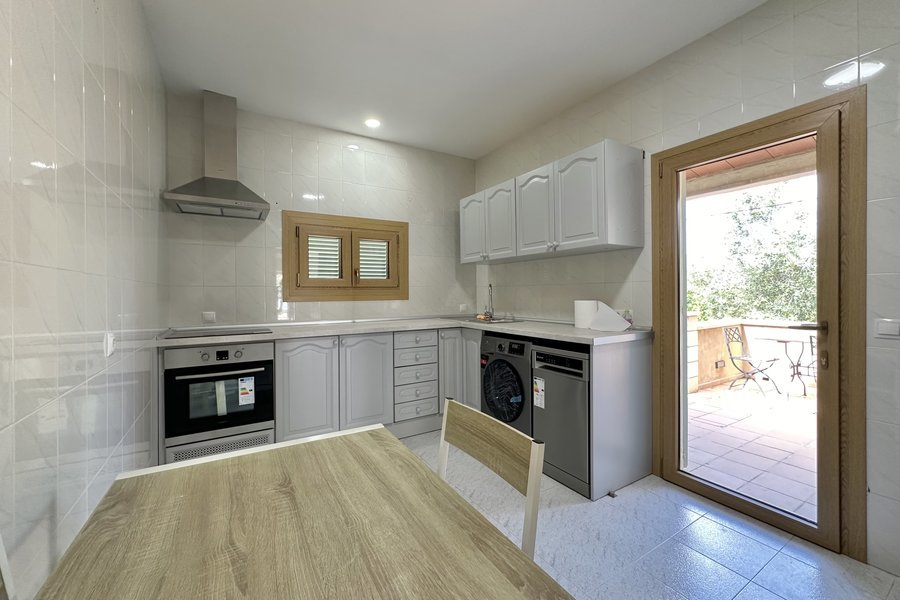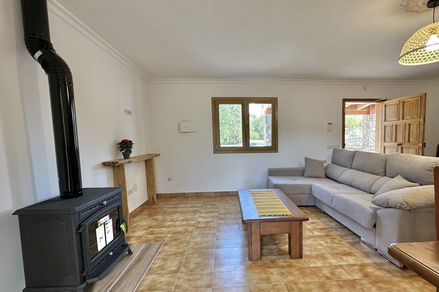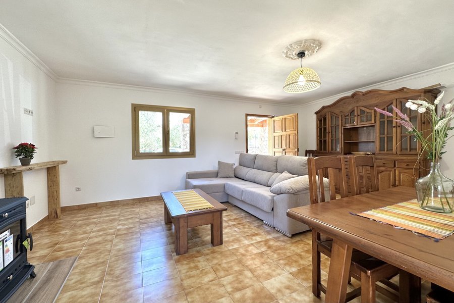 Dieses charmante Haus bietet eine perfekte Kombination aus Komfort und Natur auf 90 qm Wohnfläche. Das Anwesen umfasst zwei gemütliche Doppelzimmer, eines davon mit einem praktischen Einbauschrank, sowie ein modernes Badezimmer. Das 3500 qm große, eingezäunte Grundstück bietet viel Platz und Sicherheit für alle Aktivitäten im Freien. Der 3x5 m große Pool lädt an heißen Tagen zum Erfrischen ein. Im Wohnzimmer sorgen Klimaanlage und ein Kamin für angenehme Temperaturen zu jeder Jahreszeit. Zusätzlich bietet eine Dachterrasse einen herrlichen Ausblick und einen Ort zum Entspannen. Nur 100 Meter entfernt befindet sich eine Ladestation für Elektrofahrzeuge, die gegen Gebühr genutzt werden kann.